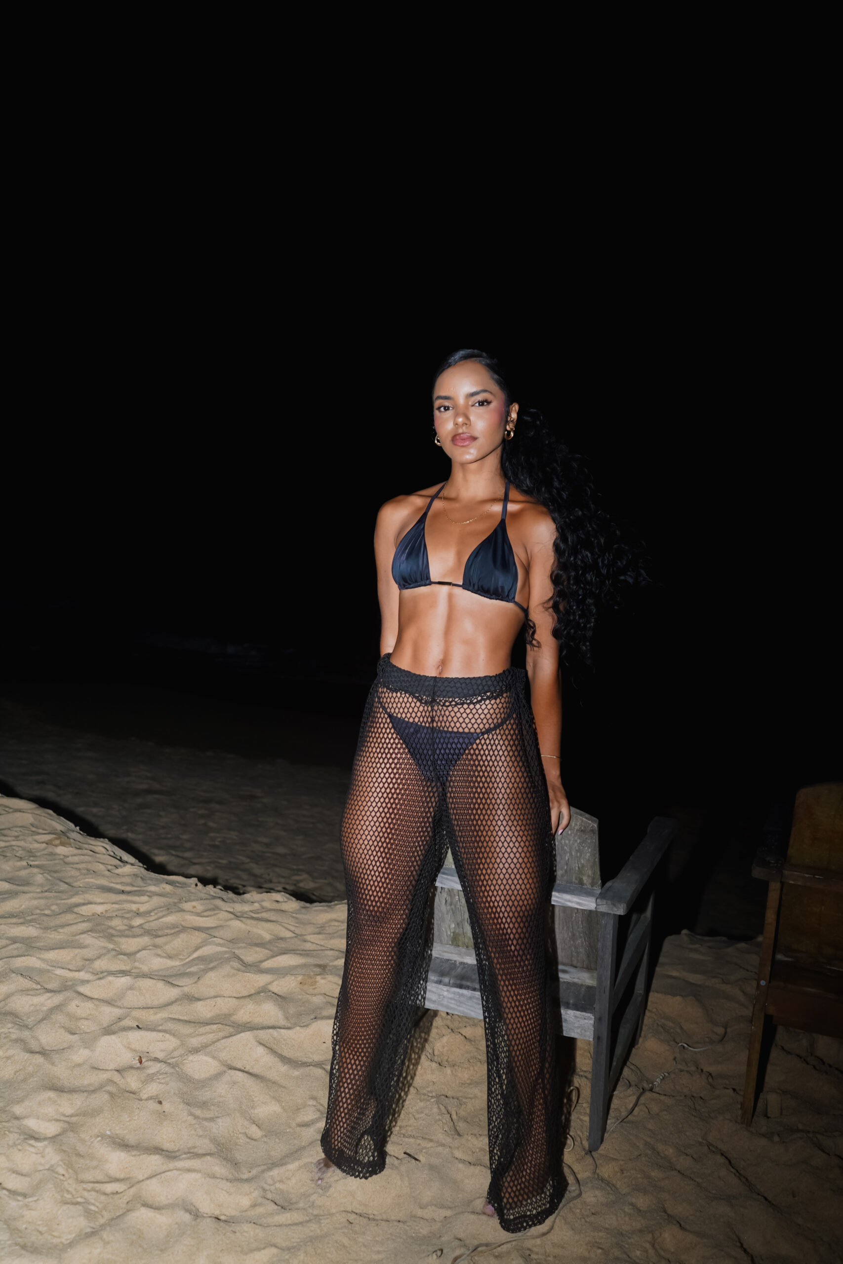 Sensual e sofisticada, a calça Tule Noite é perfeita para compor looks de praia e pós-praia.