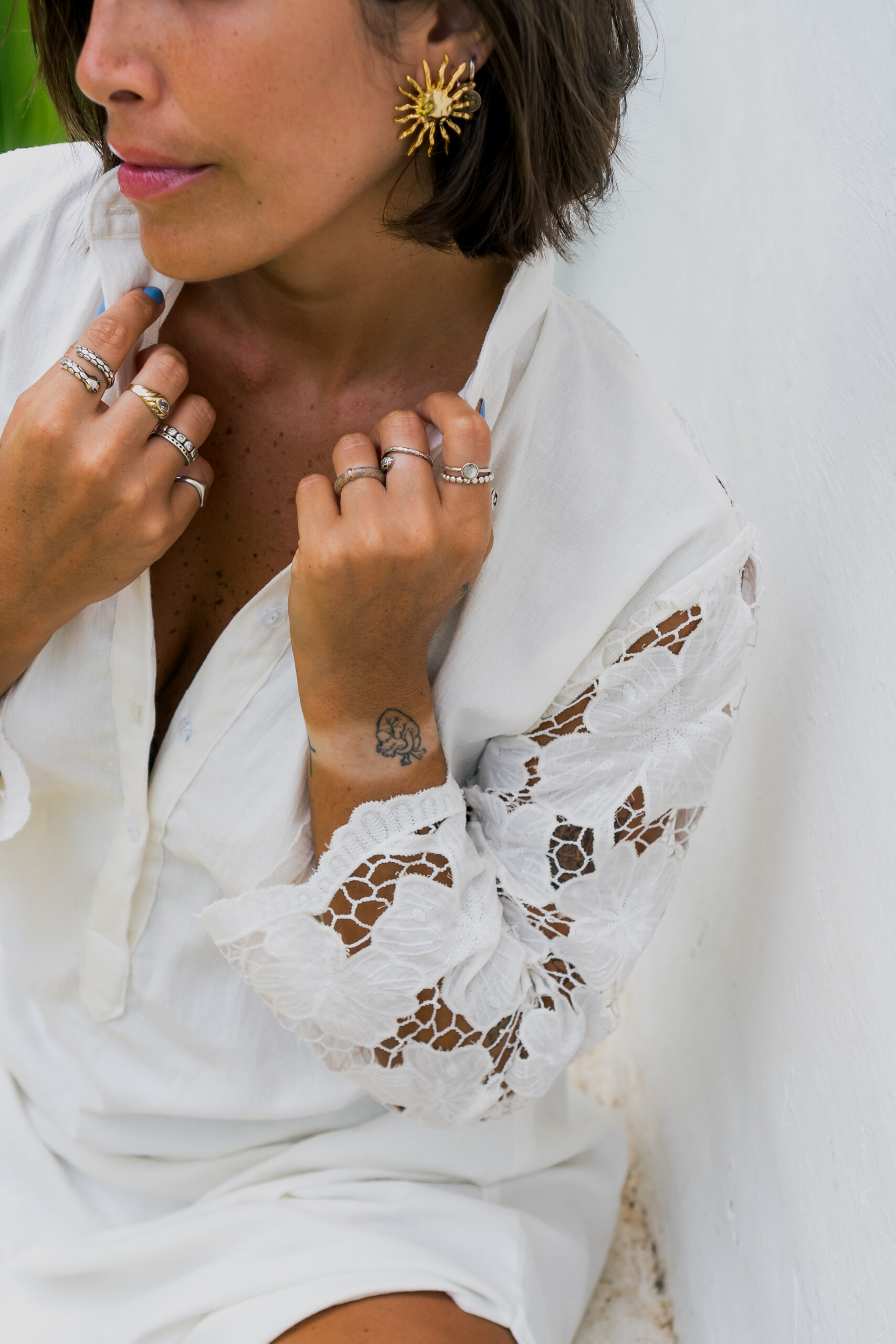 Chemise <Marina> feita de linho off, combinada com rechelleu traz um toque delicado e refinado, criando um contrastante harmonia entre a suavidade do tecido e bordado de flores. Perfeita para ocasiões que pedem um toque de classe e leveza.
